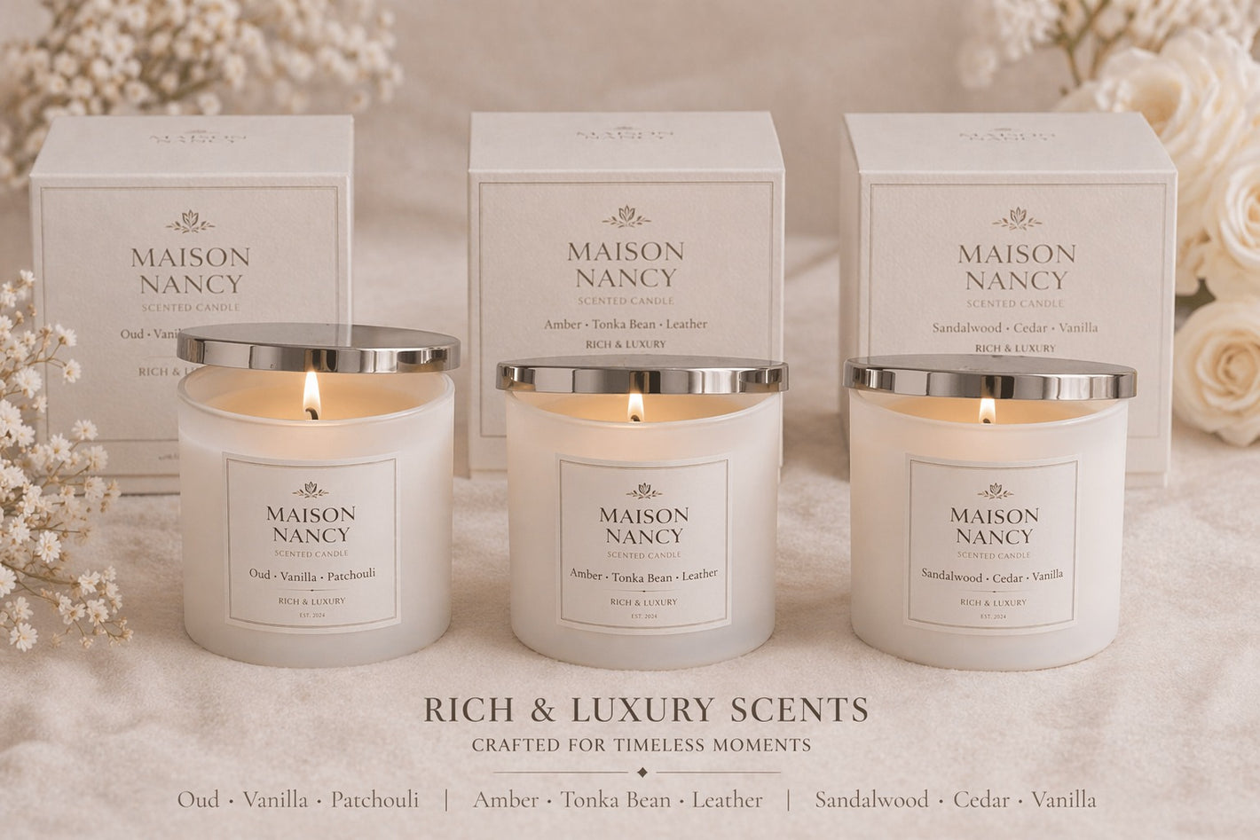 Our candles offer a longer-lasting fragrance and cleaner burn compared to mass-produced alternatives using harmful paraffin waxes.